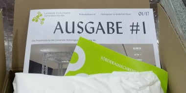 Die Projektzeitung »Ausgabe #1« liegt in den beteiligten Landkreisen (Alb-Donau-Kreis, Biberach, Heidenheim, Ostalbkreis, Reutlingen, Schwäbisch Hall, Sigmaringen) und Kultureinrichtungen aus und kann unter www.lernende-kulturregion.de herunterladen oder bestellt werden.