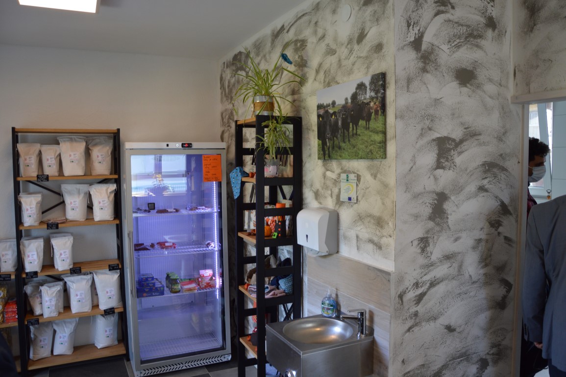 Das nächste Ziel war"Desi's Hoflädele" in Meßkirch - Rohrdorf. Das mit Mitteln aus dem Regionalbudget geförderte Kleinprojekt ermöglichte der Familie Ramsperger die Einrichtung eines Hofladens zur besseren Vermarktung der Produkte ihres eigenen Biobetriebs und weiterer regionaler Produkte. Desiree Ramsperger nahmmit ihrer Schwiegermama die bulgarischen Gäste in Empfang und berichtete über das Kleinprojekt, welches im Jahr 2020 umgesetzt wurde. Im Anschluss fuhren wir noch zu den Weiden der Ramspergers um mehr über ihre Rinderhaltung, die naturschutzfachliche Landschaftspflege und die Vermarktung zu erfahren.