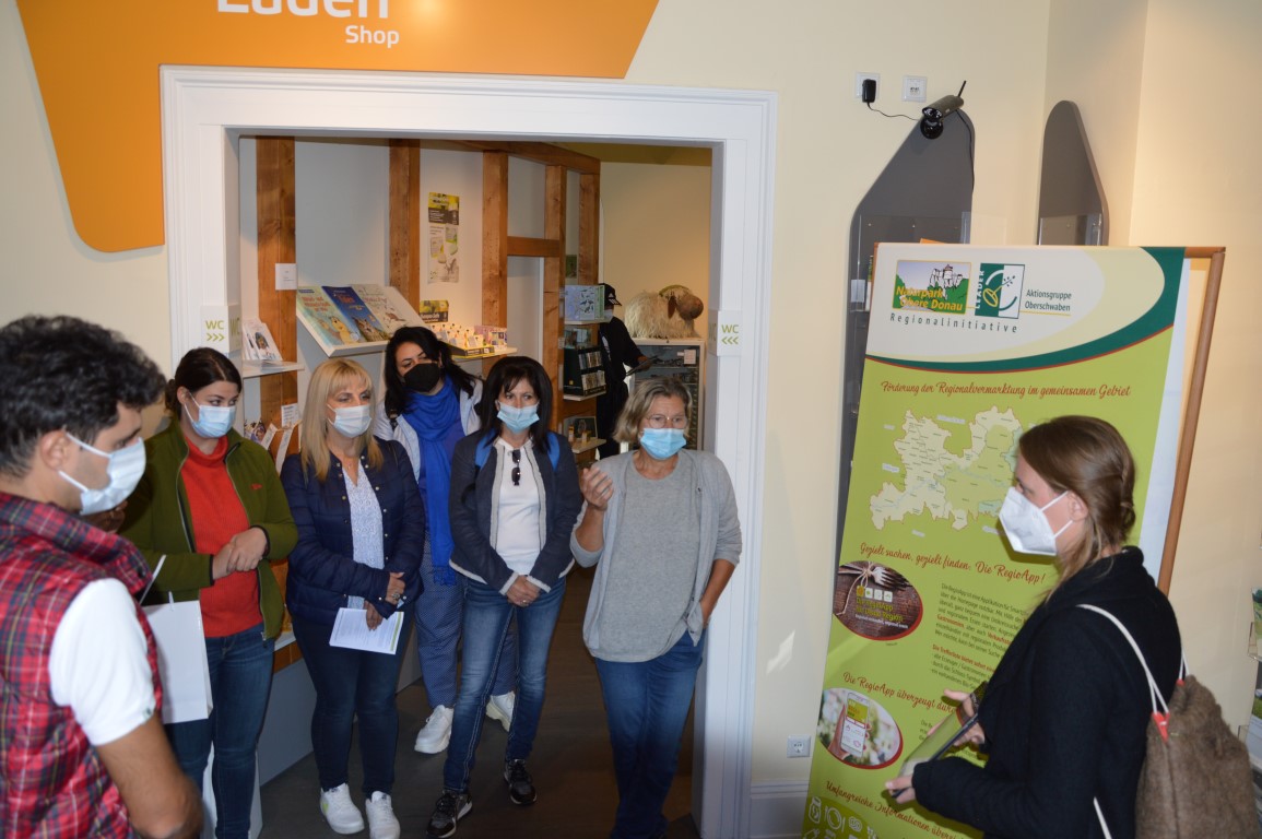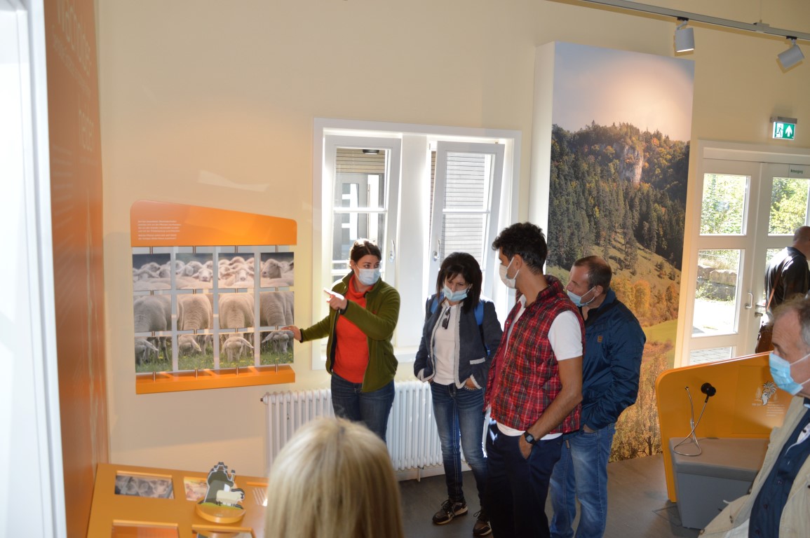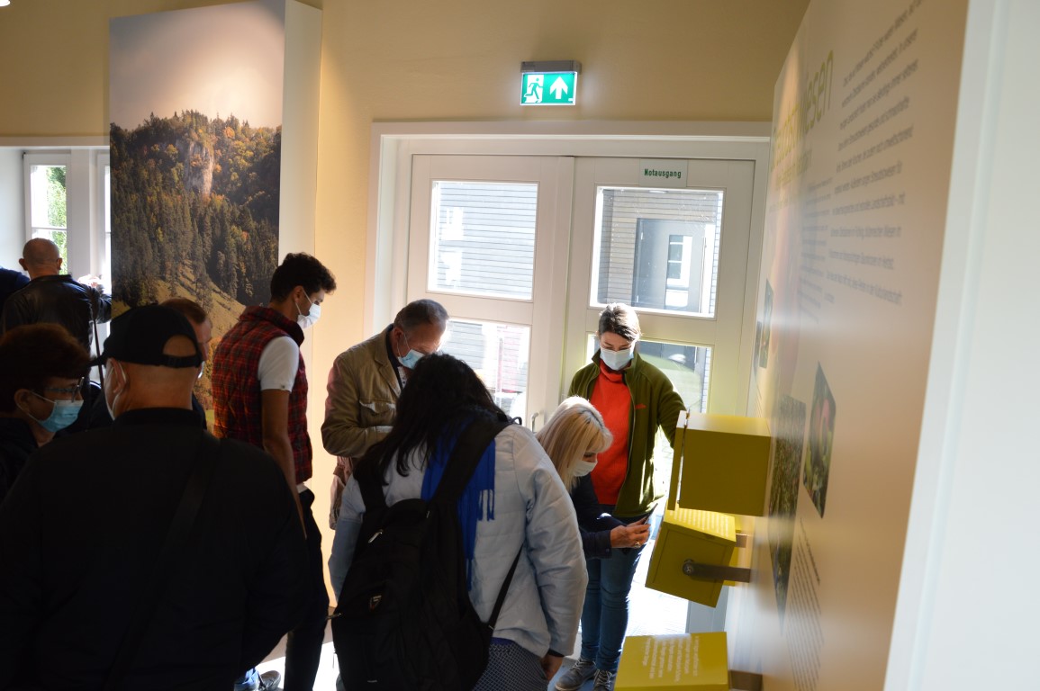 Um unseren Gästen eine bessere Vorstellung geben zu können, wo sie sich geografisch und landschaftlich befinden, welche vielfältigen regionale Produkte angeboten werden und wie LEADER-Oberschwaben in einer Kooperation biologisch wirtschaftende Betriebe unterstützt, ging es nochmals nach Beuron. Diesmal in das Haus der Natur und damit zur Geschäftsstelle des Naturparks Obere Donau e.V. Christina Baumhauer, stellv. Geschäftsführerin des Naturparks und Kirsten Schille, zuständig für Regionale Vermarktung, führten die Gäste durch die interaktive Ausstellung im Haus der Natur.