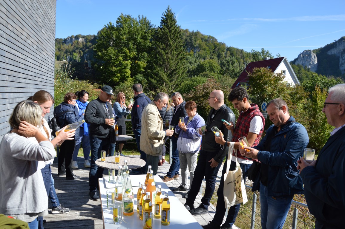 Bei schönstem Sonnenschein und Blick auf die Felsformationen im Tal gab es noch eine Erfrischung und Verkostung der leckeren Streuobstsäfte der "Genossenschaft Bäuerliche Vermarktung Oberes Donautal e.G." (BODEG).