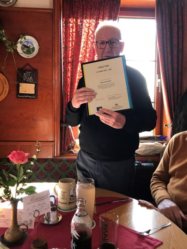 Um den Erfolg der Bewerbung, die Übergabe der Urkunde, sprich die Neuaufnahme in die kommende Förderperiode im Rahmen der Mitglieder des Vereins zu "feiern" und zugleich die neuesten Informationen in Richtung Förderperiode 2023 - 2027 allen Mitgliedern weiter zu geben, lud der Verein zur außerordentlichen Mitgliederversammlung nach Zwiefaltendorf in "Blank's Brauereigasthof" ein.