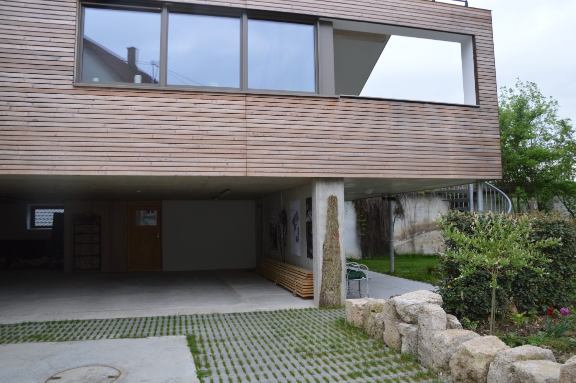 Frau Dr. Sabine Köberle führte durch die drei Zimmer mit Bad und erläuterte das besondere Schlafkonzept „Samina“. Ein Bett stand sogar zum Probeliegen zur Verfügung. Doch nicht nur die Holzbetten ohne Metall, die speziellen Lamellenroste und das Bettzeug aus Schafwolle machen das Übernachten im Gästehaus zu einem besonderen Erlebnis. Auch das Offenlegen des alten Gebälks, der Fichteholzboden, die Lehmwände und der Permakulturgarten sorgen für ein einzigartiges Ambiente, das zeigt, dass sich das Besitzerpaar der naturnahen, ressourcenschonenden und klimafreundlichen Nachhaltigkeit verschrieben hat. Deutlich wurde dies spätestens dann, als Herr Köberle gemeinsam mit seinem Sohn das Energiekonzept des Gästehauses demonstrierte. Das alte Jauchebecken des Hofes wurde vor Jahren zum Regenwasserspeicher umfunktioniert. Diesem Regenwasser wird nun Wärme entzogen und in Energie umgewandelt.