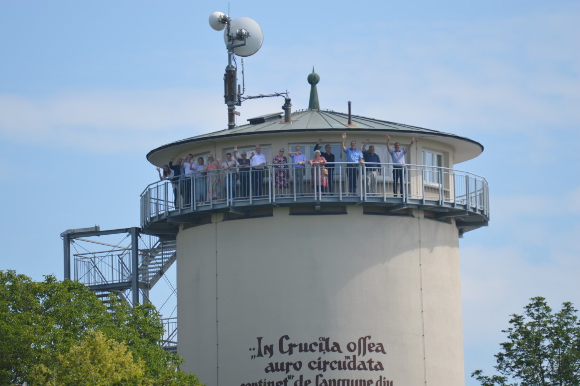 Krönender Abschluss der Sitzung war nach dem Regen bei herrlichem Sonnenschein die Besteigung der kürzlich eröffneten Aussichtsplattform am Inneringer Wasserturm, ein ebenfalls von LEADER gefördertes Projekt.