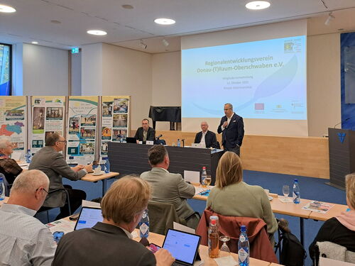 Was zehn Jahre Regionalentwicklungsverein in Zahlen bedeuten, stellte Geschäftsstellenleiter Emmanuel Frank vor. Seit Gründung des Vereins wurden durch die LEADER-Aktionsgruppe Oberschwaben rund 10 Mio. Euro Fördergelder beschlossen und Stand heute etwa 7 Mio. Euro für eine nachhaltige Strukturentwicklung in den Gemeinden ausbezahlt. Diese Fördergelder bewirkten, dass ca. 25 Mio. Euro in die Realisierung von Projekten investiert wurden, die unseren ländlichen Raum weiterentwickeln. Voraussetzung dafür ist das große Netzwerk, das der Verein betreibt: über seine Mitglieder aus den Kommunen und Landkreisen, aus Vereinen, Verbänden, Unternehmen und der Bürger*innenschaft unserer Gebietskulisse, über Bündnisse („Wir sind dran!“), Arbeitskreise zu den Themen Mobilität, Jugend und Klimaschutz sowie über Kooperationen beispielsweise mit dem Naturpark Obere Donau in Sachen „Regio-App“.