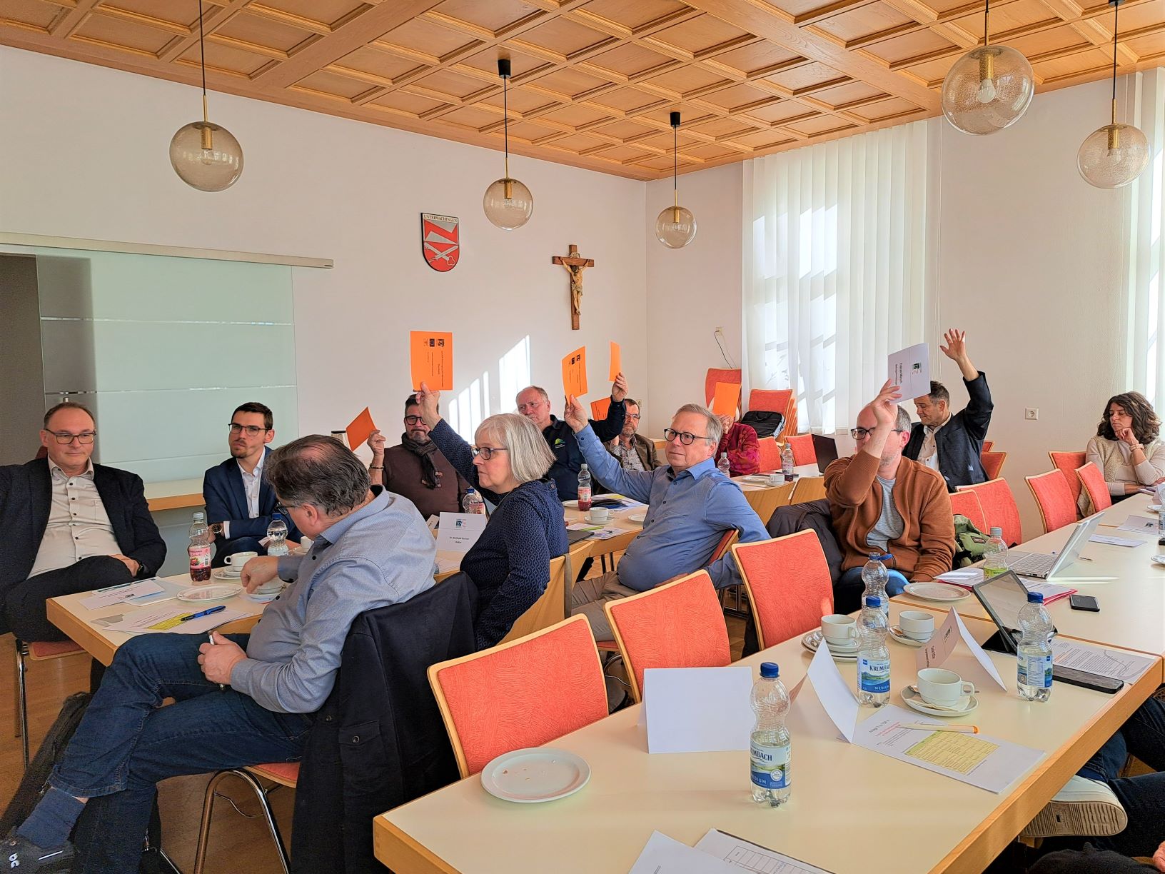 Am 12. März 2026 tagte unser Auswahlausschuss bereits zum siebten Mal in der laufenden Förderperiode. Wir waren zu Gast im Gemeindesaal in Unterwachingen im Alb-Donau-Kreis. Dort begrüßte uns Bürgermeister Timo Schulze, der seine Gemeinde vorstellte als einen Ort, der nicht nur wirtschaftlich mit zwei großen Firmen etwas zu bieten habe, sondern auch kulturell mit der Kirche und dem Skulpturenpfad des örtlichen Künstlers Alois Aßfalg.