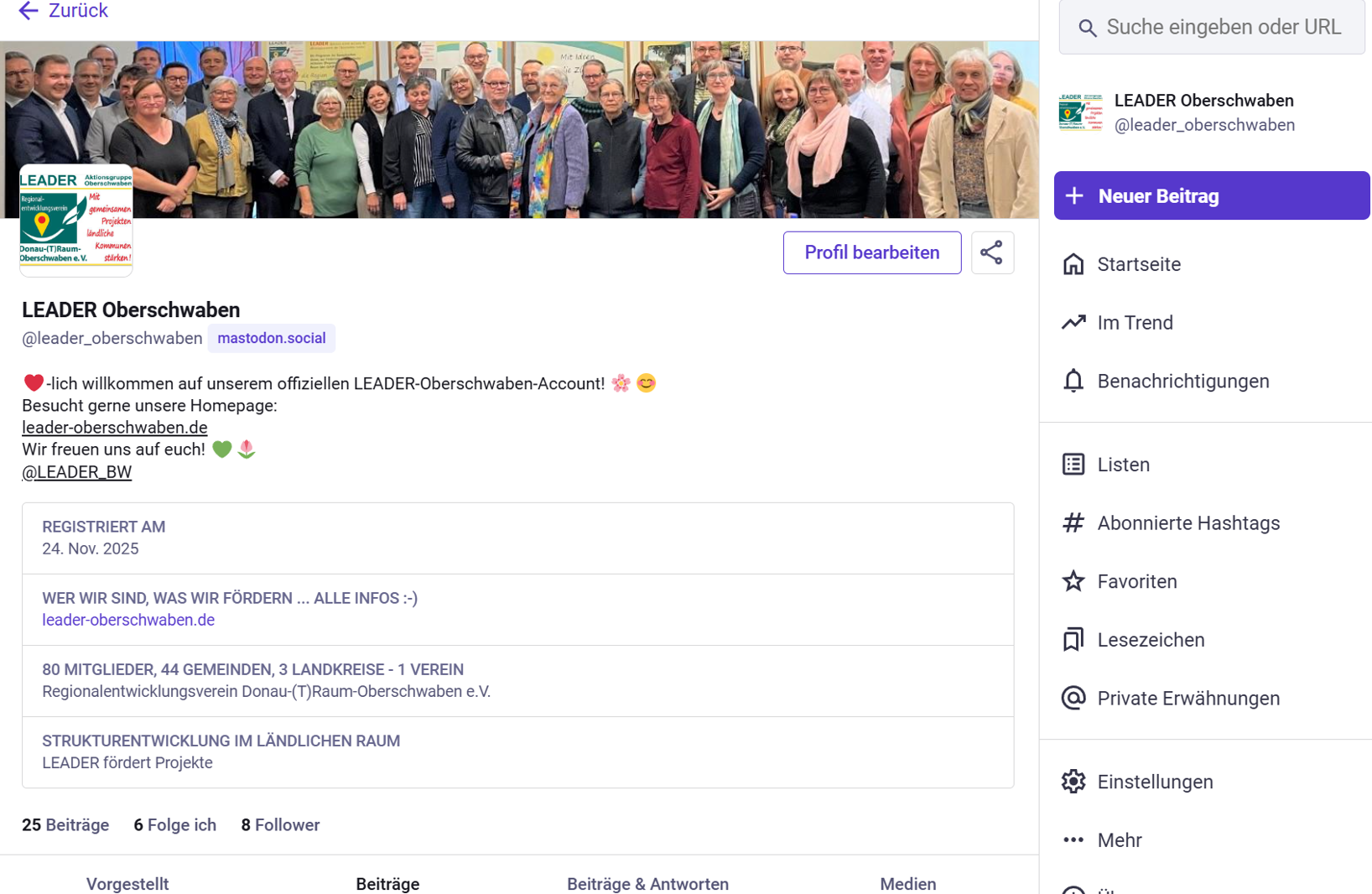 Außerdem gibt es seit Kurzem einen landesweiten Social-Media-Auftritt aller LAGs aus Baden-Württemberg auf Instagram, Facebook und Mastodon.