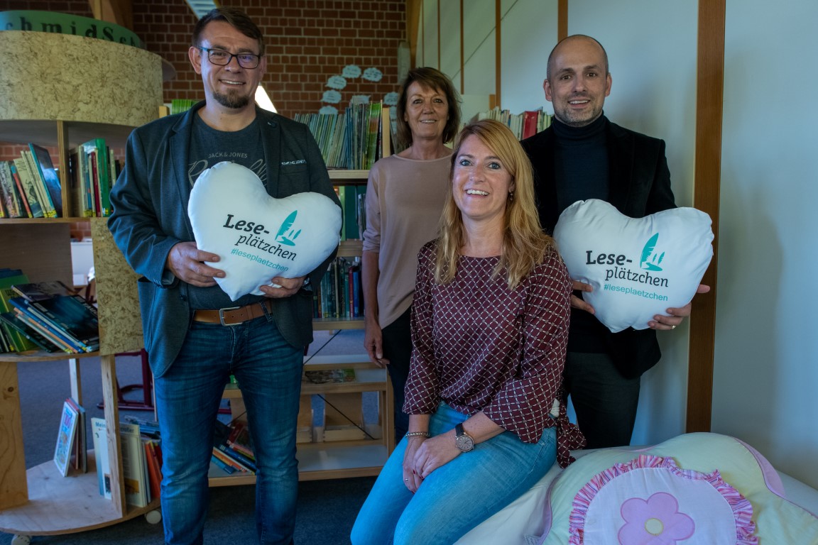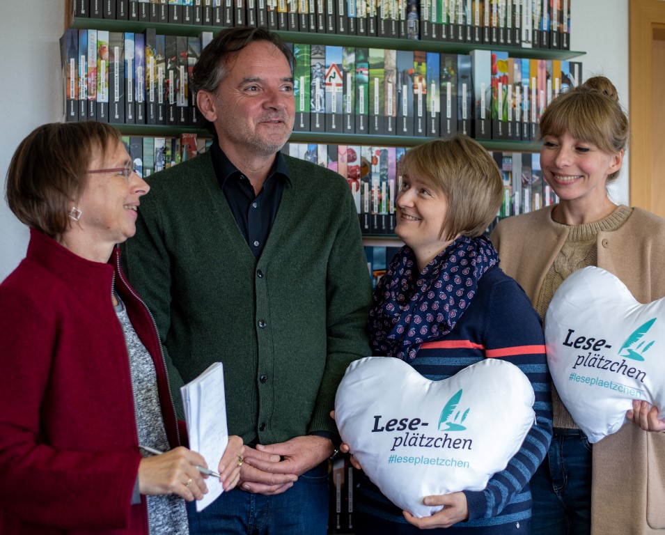 Zu den Bildern: Die Christoph von Schmid-Schule in Oberstadion zählt genauso zu den „Leseplätzchen“ wie der Gmeiner-Verlag in Meßkirch.