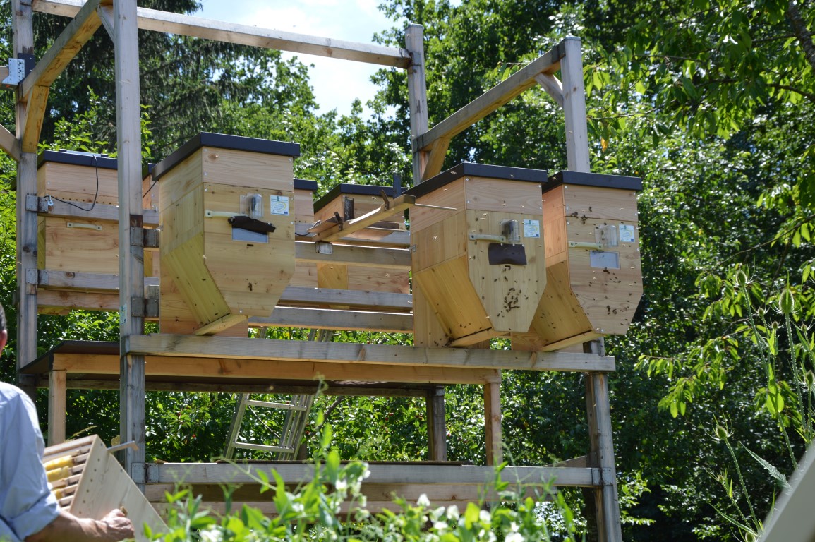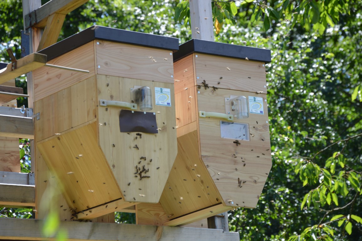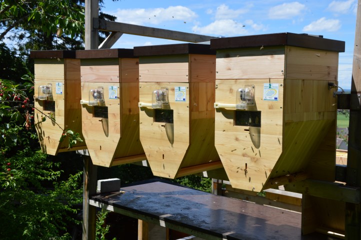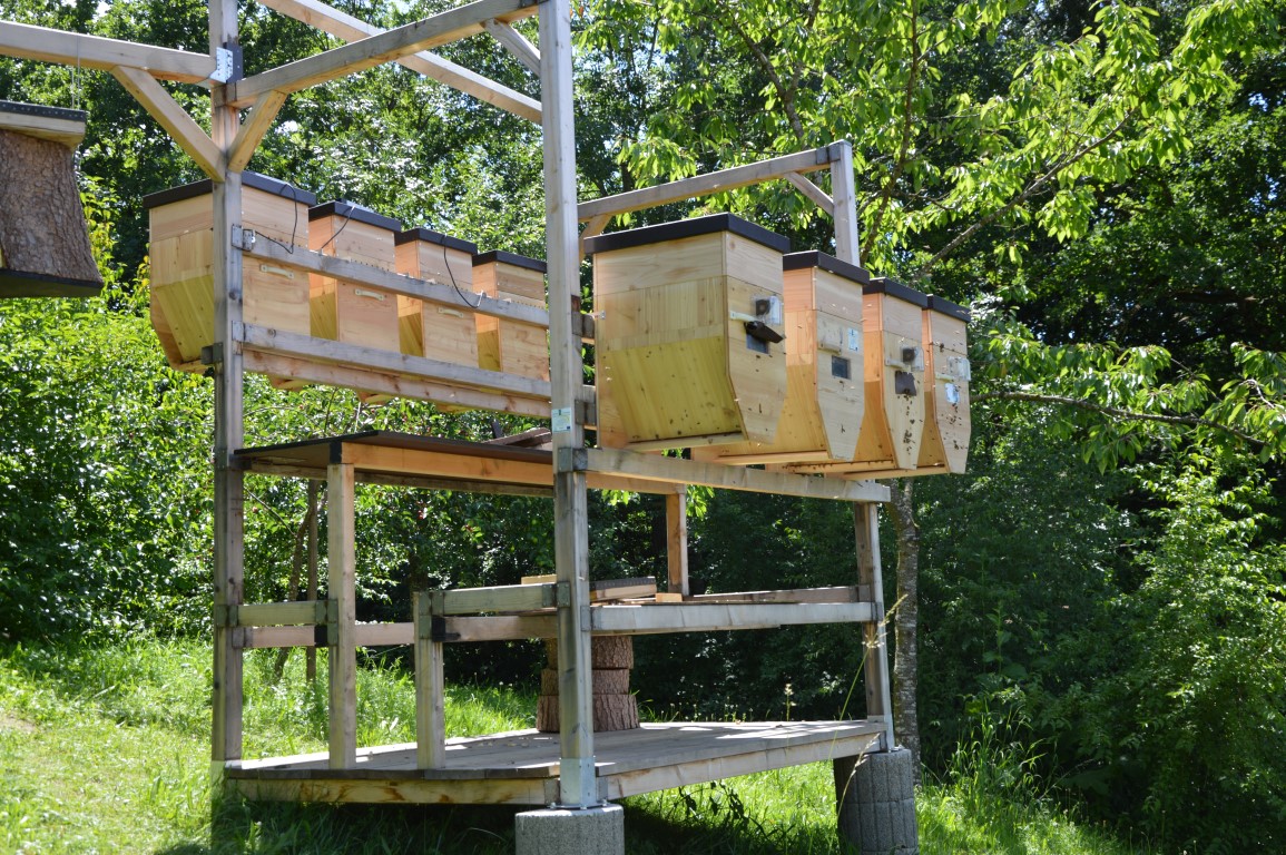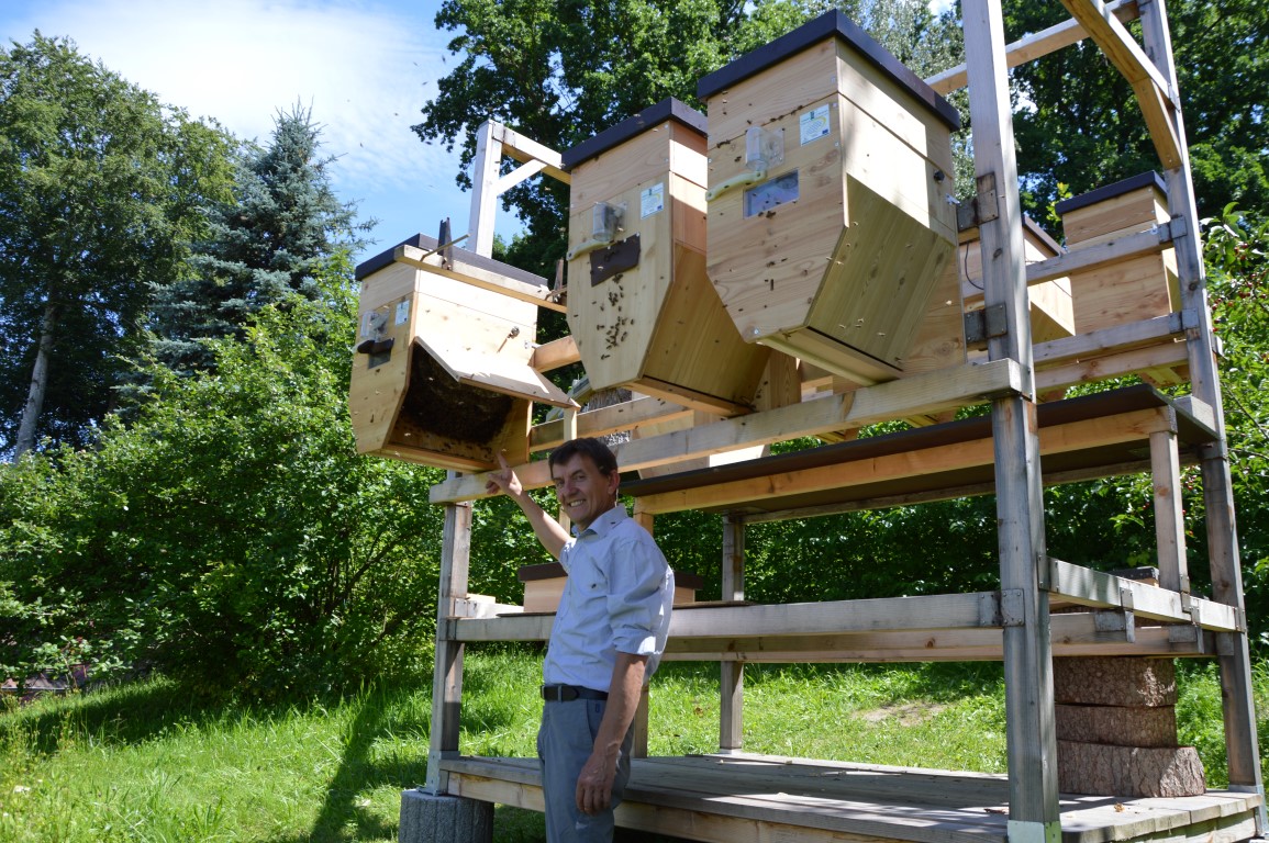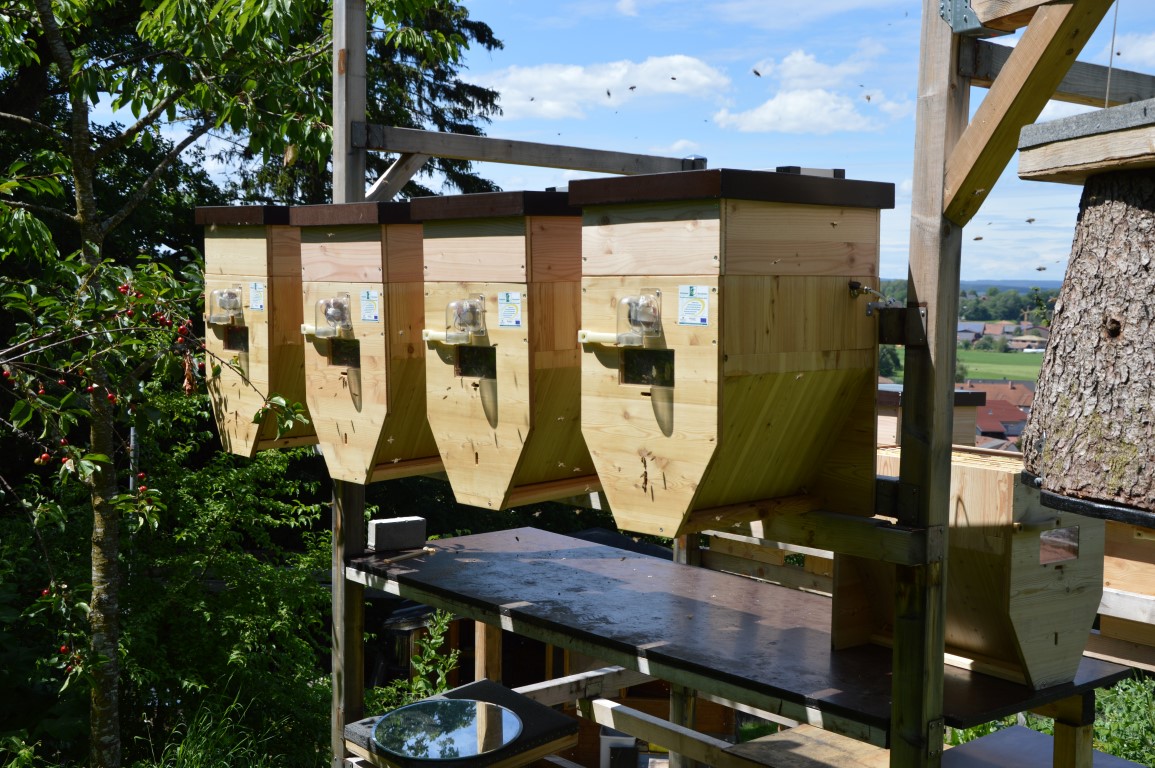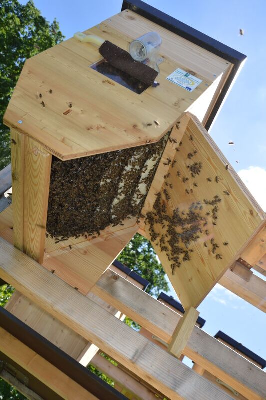 Die Kontrolle der Kästen erfolgt bequem von unten, so dass die Bienen nahezu ungestört bleiben.