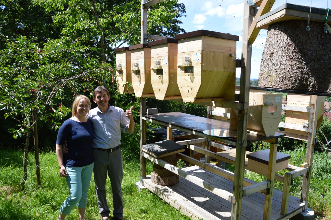Bild: Frau und Herr Sigel vor ihrem Bienen-Hochstand.