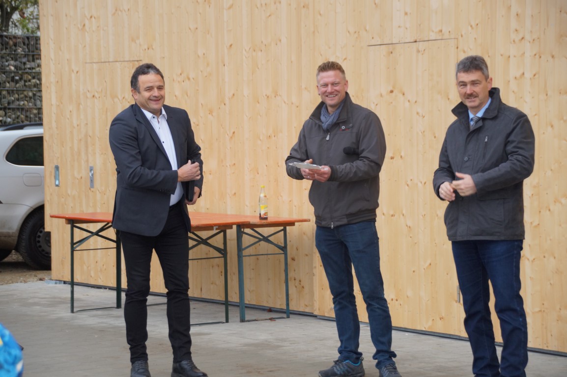 Vor einem Jahr fiel der Startschuss zum Gemeinschaftsprojekt in Hohentengen: Ein Vereinsschuppen für fünf Vereine. Am vergangenen Freitagnachmittag war es nun soweit. Alle Vereinsvertreter, Mitglieder und Gäste und vor allem Bürgermeister Bernhard Ritzler als Vertreter der Aktionsgruppe Leader sowie Bürgermeister Peter Rainer trafen sich zur offiziellen Übergabe der neuen Vereinsräume vor Ort.