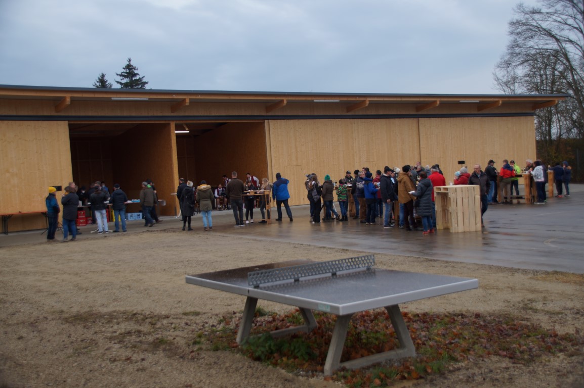 Trotz Corona habe man dann das Gemeinschaftswerk angepackt mit örtlichen Betrieben und dabei wurde viel Eigenleistung von den Mitgliedern der beteiligten fünf Vereine erbracht. Im Zuge der enormen Verteuerung von Baumaterialien in der Bauzeit „haben wir trotzdem gut gewirtschaftet“, so der Sprecher der Vereine, Stefan Rothmund. Es entstand eine Verteuerung von 10 000 Euro, was angesichts der Umstände vertretbar war. Am Schluss hat der Neubau des Vereinsschuppens 175 000 Euro gekostet. Von Leader kamen 68 000 Euro an Zuschuss, die Gemeinde Hohentengen steuerte neben 17 000 Euro auch das Grundstück bei, dazu wurden Eigenleistungen in Höhe von 35 000 Euro erbracht. Der Restbetrag wurde dann auf die fünf am Bau beteiligten Vereine umgelegt. Das sind der Musikverein und der Narrenverein Hohentengen, der Spielmannszug-Narrenverein Bremen, der Gögemer Anglerverein sowie der Fanfarenzug Hohentengen. Rothmund sprach stellvertretend Dank an alle beteiligten Betriebe für ihre gute Arbeit und Unterstützung aus und ein Lob ging an die vielen freiwilligen Helfer. „Wer's Wetter scheut, der kommt it weit“ – Dieser Spruch treffe laut Bürgermeister Peter Rainer in keinster Weise auf die fünf Vereine zu, die sich am Neubau des Vereinsschuppens beteiligten. Alle Vereine der Göge seien angeschrieben worden, um ihr Interesse an dem Bau „abzuklopfen“. Schlussendlich hätten sich fünf getraut, hier was zu tun und sich nicht gescheut, auch etwas zu riskieren. Am Ende sei dabei eine typische Gögemer Leistung herausgesprungen und man habe einmal mehr „zammag'holfa“. Sein Dank galt allen, die mit angepackt haben, ob Betriebe oder Vereinsmitglieder. Ein Lob gab es aber auch für den „Motor“ des Ganzen, nämlich Stefan Rothmund und an Thomas Kaufmann. Als ehemaliger Ortsbaumeister habe er zum einen die Bauleitung übernommen und auch den Kontakt zur Verwaltung gepflegt. Rainer ist sich sicher, dass nun auch Feste und Anlässe in den neuen Vereinsräumen stattfinden werden, sodass auch hier wieder die Gemeinschaft gepflegt wird.
