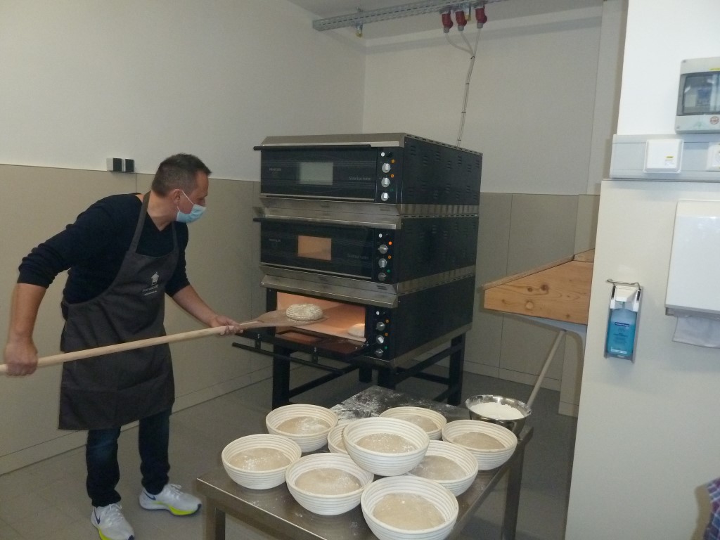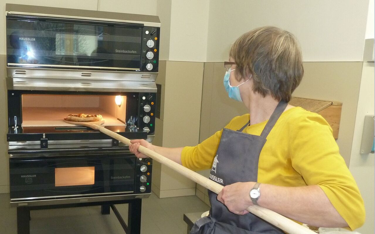 Im Rahmen der Einweisung der "Backfrauen" durch Bäcker Müller von der Fa. Häussler wurde deutlich, dass es hier nicht nur um einen modernen, energieeffizienten Backofen geht. Immer wieder wurde die Gemeinschaft in den Vordergrund gestellt - und die Gesundheit. So können die Bürger*innen ihren eigenen Teig zum ausbacken bringen und sind somit selbst verantwortlich für die Zutaten. Dies ist vor dem Hintergrund, dass in einem industriell gefertigten Brot im Rahmen des Herstellungsprozesses bis zu 40 verschiedene Zusatzstoffe eingebracht werden können, die nicht deklariert werden müssen - nur weil sie im Endprodukt nicht mehr nachweisbar sind - von durchaus großer Bedeutung!