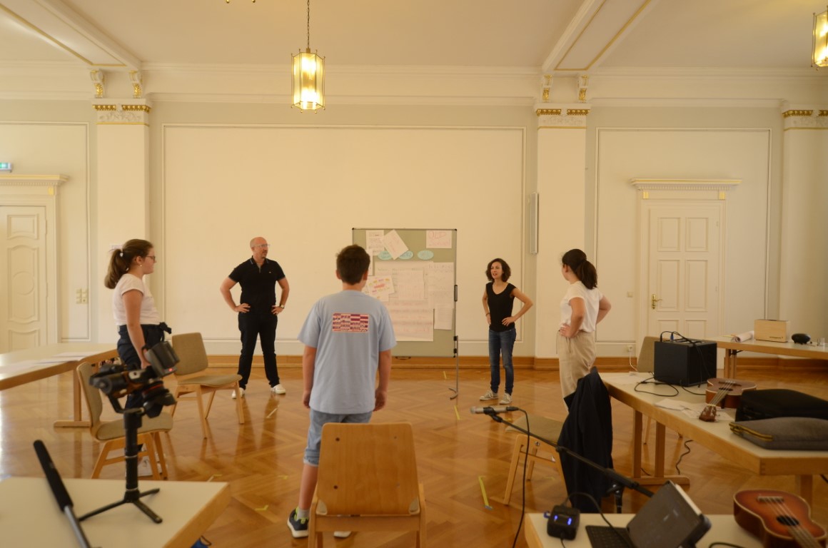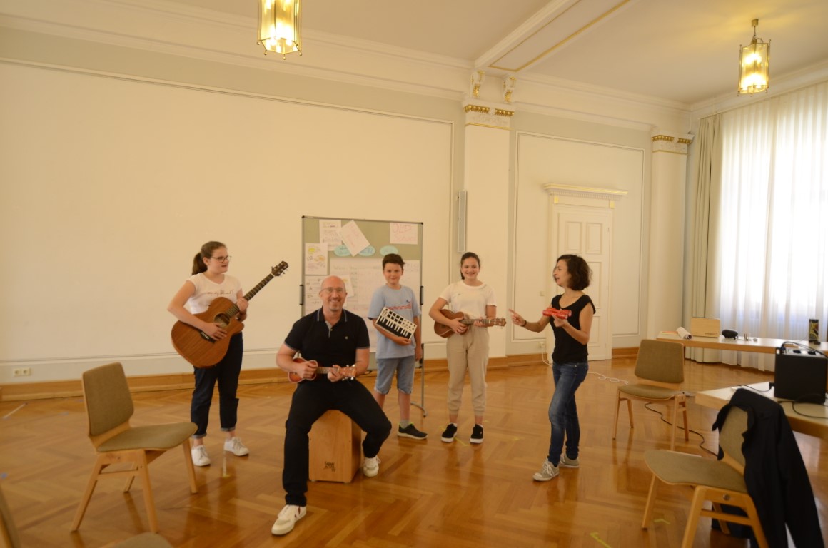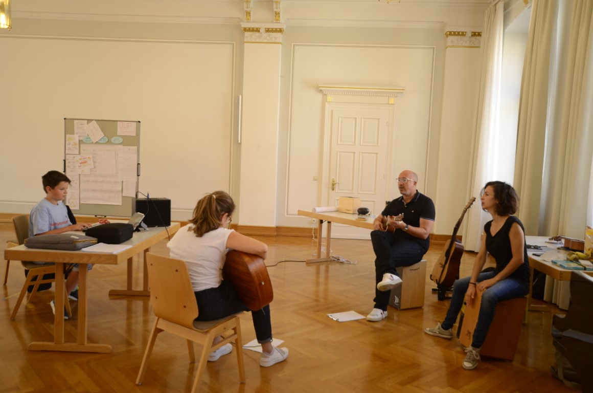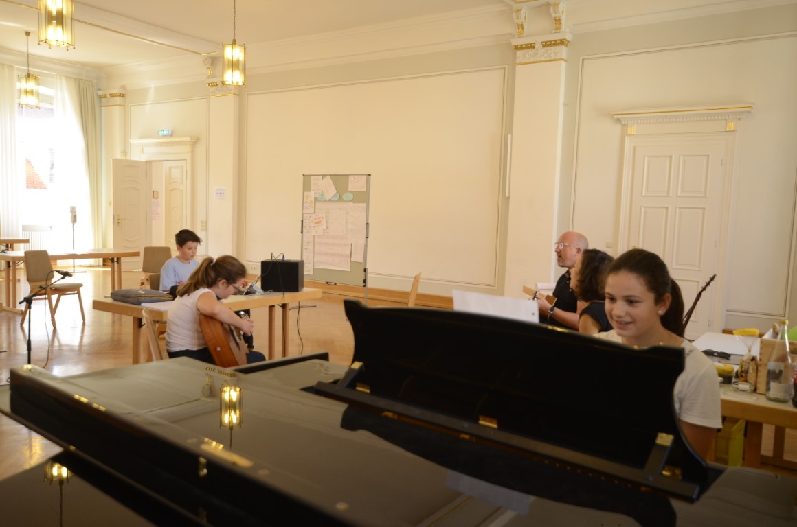 Gestartet wurde zu Beginn der Ferien mit dem 4-tägigen Workshop „Drachenburg und Elfenzauber“ für 6-10-Jährige. Im Schloss in Meßkirch verfassten die Kinder unter Anleitung von Nina Blazon ihre eigene Geschichte, in der ihre Fantasy-Figur ein spannendes und fantastisches Abenteuer erlebt. Inspiration dazu holten sie sich bei einem Ausflug auf die Mittelalter-Baustelle Campus Galli. Weiter ging es am 9. August mit den 11-14-Jährigen. Unter dem Motto; „Schreib‘ deinen eigenen Song“, sollten die Jugendlichen selbst einen Songtext mit Melodie verfassen. In den 4 Tagen lernten sie mit Hilfe von Tobias Elsässer und Katrin Medde den Umgang mit Musik und Sprache. Am Ende des Workshops gab es ein kleines Konzert auf der Donaubühne in Sigmaringen.