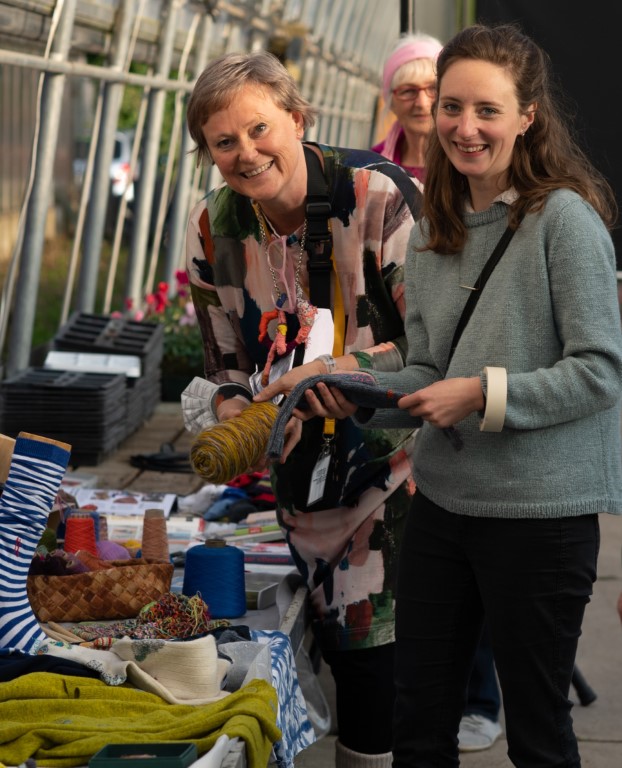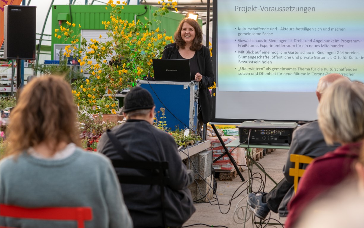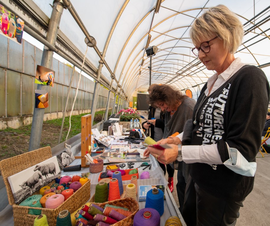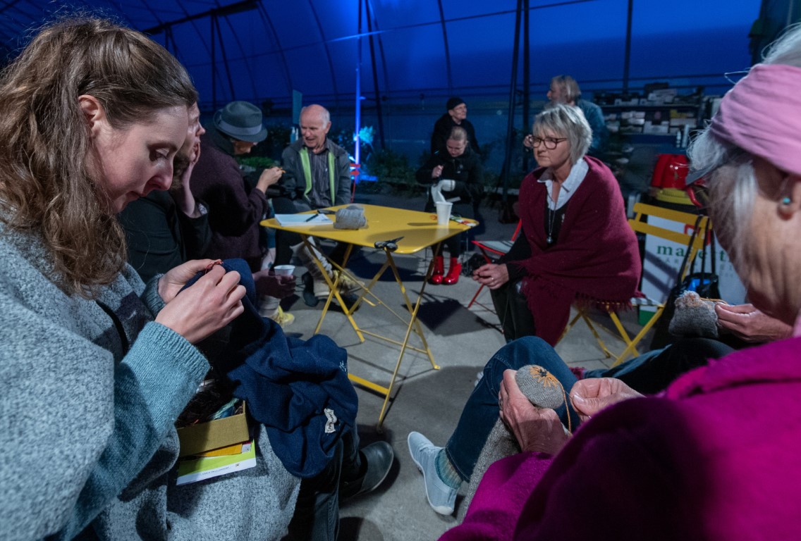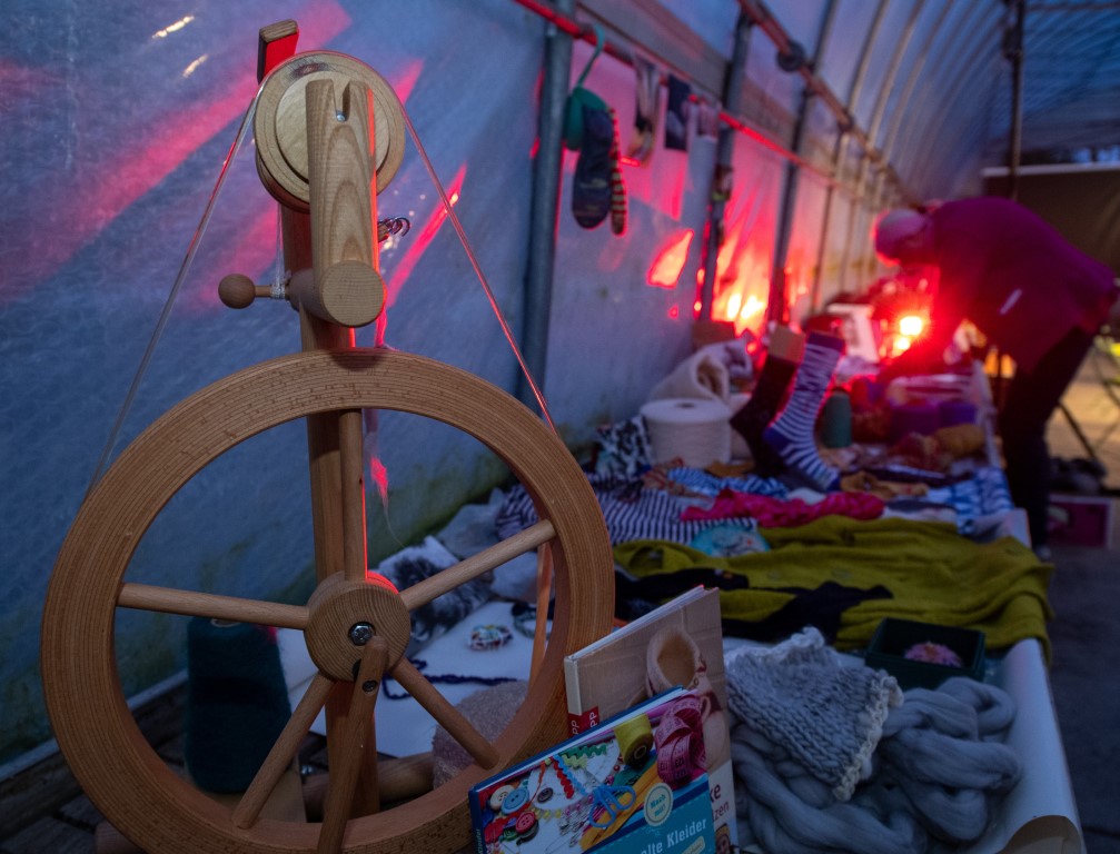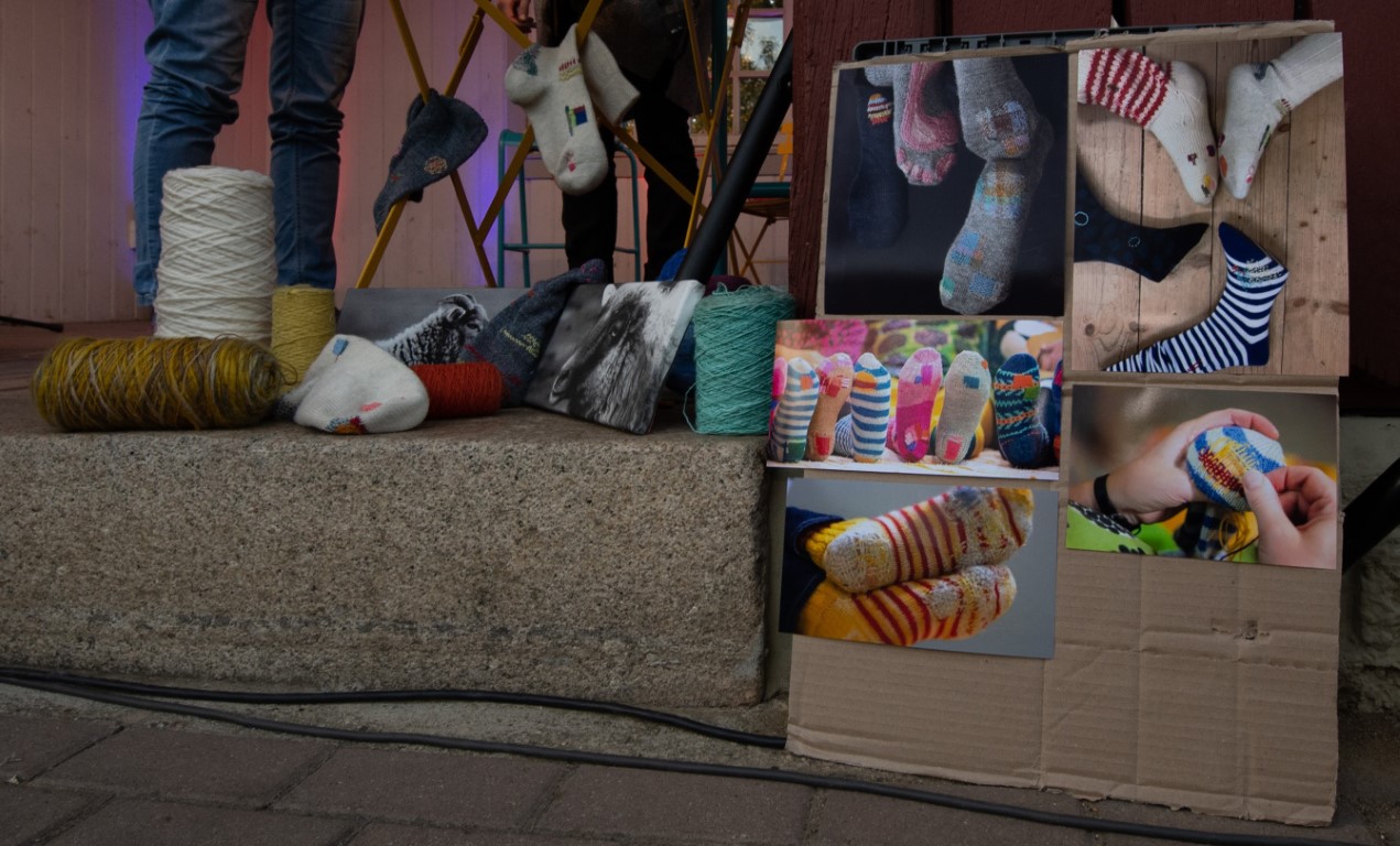 Selbstverständlich bietet das LiO-Netzwerk auch für die Erwachsenen unglaublich viele Veranstaltungen zur kulturellen Weiterbildung. Wie das Projekt „Überwintern – Riedlinger KulturPflänzchen“. Die Auftaktveranstaltung fand im weitläufigen Gewächshaus Masetti in Riedlingen statt. In diesem außergewöhnlichen Ambiente fanden verschiedenste Veranstaltungen statt. Nach der Begrüßung durch Henrike Müller ging es mit Nanna Aspholm-Flik und Magdalena Popp weiter im Programm. Die beiden Textildesignerinnen forderten unter dem Motto „Socken mit Loch“ dazu auf, löchrige Wollsocken nicht einfach wegzuwerfen, sondern sie auf lustige und auffallende Art und Weise zu flicken. So werden daraus wundervolle Lieblingsstücke. Viele der Anwesenden hatten ihre eigenen Socken mitgebracht und legten gleich los. Andere bekamen Socken von den beiden Fachfrauen zur Verfügung gestellt. Die Art dieser Wiederverwertung bzw. Aufwertung nennt man Upcycling. Während fleißig geflickt wurde konnte man im vorderen Teil des Gewächshauses Henrike Müller lauschen. Mit Hilfe einer Power-Point-Präsentation stellte sie das Projekt „Überwintern“ vor.