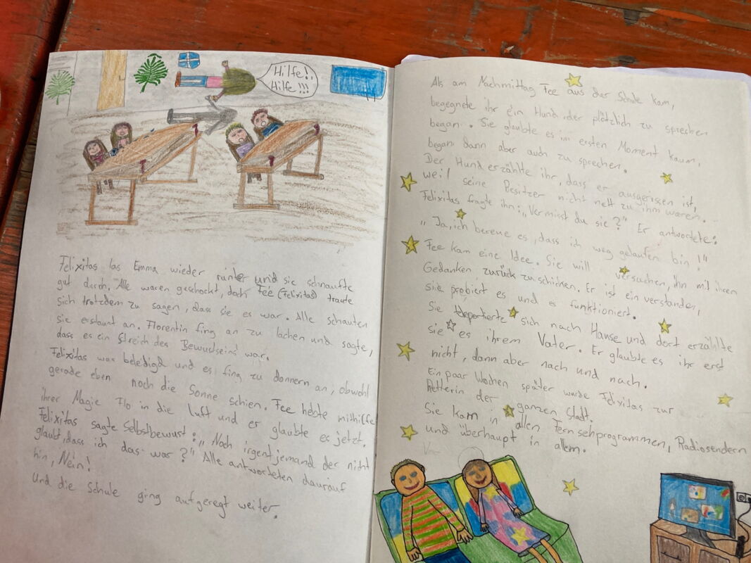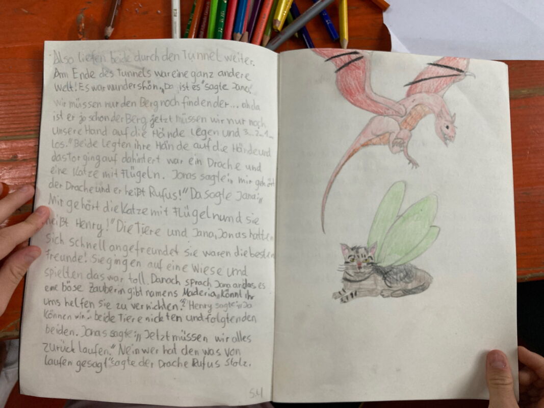 Kinder zeichnen ihre eigenen Graphic Novels und Comics