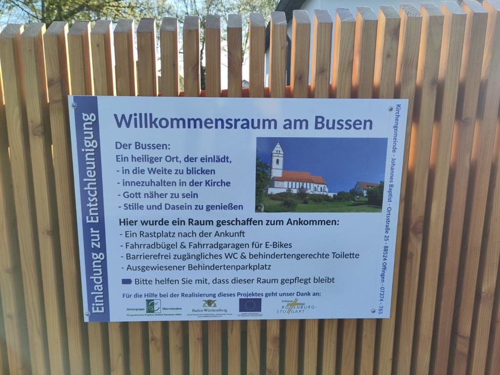 Ein Kriterium für die Projektauswahl waren die Fahrradgaragen. Gäste, die mit dem Fahrrad anreisen können so ihre Gefährte - auch mit allem Gepäck - sicher und wettergeschützt abstellen, um zu Fuß die Bussenkriche zu erklimmen. Bisher war dies leider nicht möglich und führte regelmäßig zu Konflikten, weil die Fahrräder dann den steilen Berg zur Kirche hinauf mitgenommen wurden, um sie nicht unbeaufsichtigt am Parkplatz stehen zu lassen.