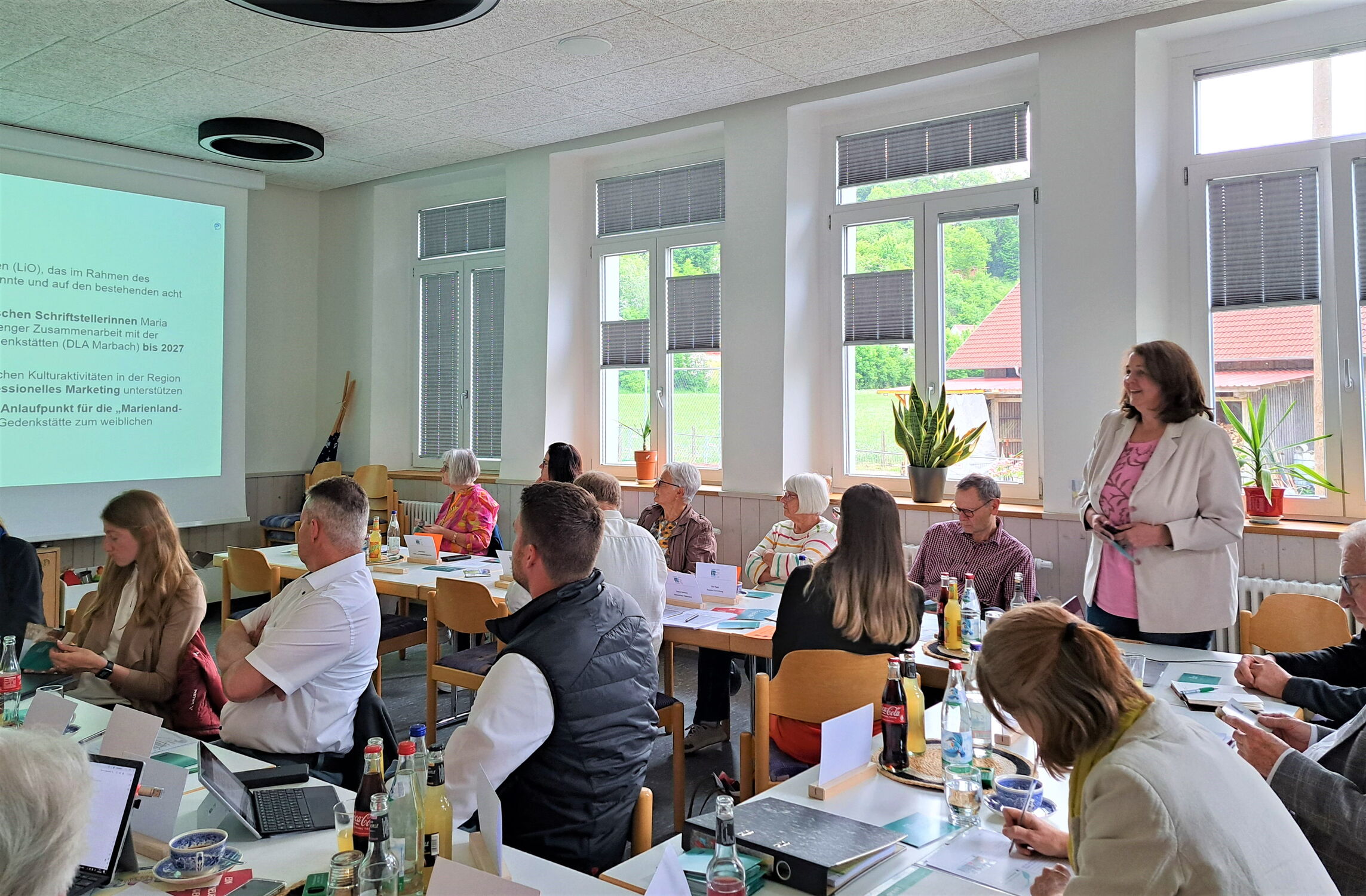 Viele Projekte sind investive Projekte, jedoch fördert LEADER im Rahmen des Regionalbudgets auch nicht-investive Projekte wie Konzepte oder Veranstaltungen. Ein Beispiel im Regionalbudget 2024: „Literatur eine Heimat geben“. Projektträgerin war Henrike Müller vom Büro für Regionalkultur eG für das Literaturnetzwerk Oberschwaben, die das Ergebnis der Konzepterarbeitung bei der Auswahlsitzung präsentierte. Zunächst ging es um die Suche nach Wirkungsorten der oberschwäbischen Dichterinnen Maria Beig, Maria Menz und Maria Müller-Gögler („drei Marien“) im Donau(t)raum Oberschwaben. Es folgten Expert*innengespräche, während derer sich die Diskussion schnell auf Maria Müller-Gögler und den Ort Munderkingen fokussierte, da sie vier Jahre in Munderkingen verbrachte. Im November fand ein Beteiligungsworkshop zur breiten ldeensammlung vor Ort statt, in dessen Ergebnis ein Konzept entstand, das Munderkingen mit Maria Müller-Gögler den Weg ins Literaturland Baden-Württemberg ebnet. Aktuell stellt Peter Dunkl die Literatin an vier Lese-Abenden über den Sommer an wechselnden Orten in Munderkingen vor (siehe LINK).